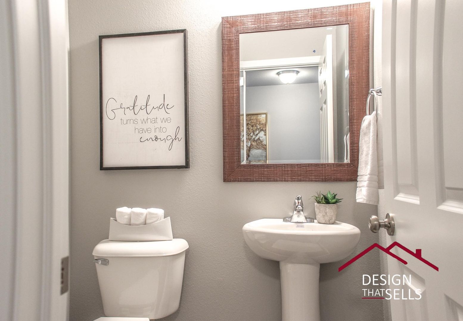 There is a 1/2 bath on the main floor for guests.
